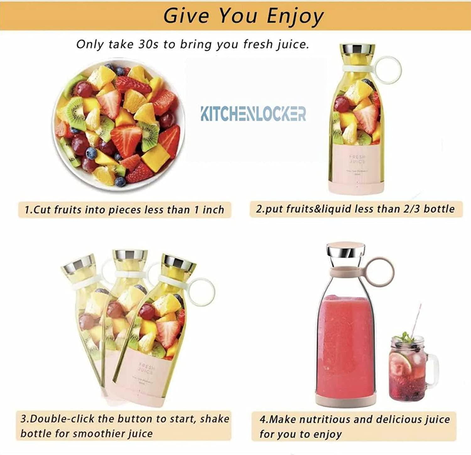 Product Name: Rechargeable Portable USB Juicer Bottle Electric Mixer Blender Smoothie Maker Grinder -4 Stainless Steel Blades 30 watts 380ml For Fruits,Drinks,Shakes Sports, Travel, Outdoor, Gym, Kitchen